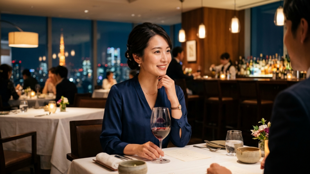 派手さを狙いすぎるより、上品さと清潔感が伝わる服装のほうが、麻布十番ではなじみやすいです。ワンピース、きれいめトップス、落ち着いた色味など、「食事の席に一緒にいて違和感がないか」を基準に考えると失敗しにくくなります。