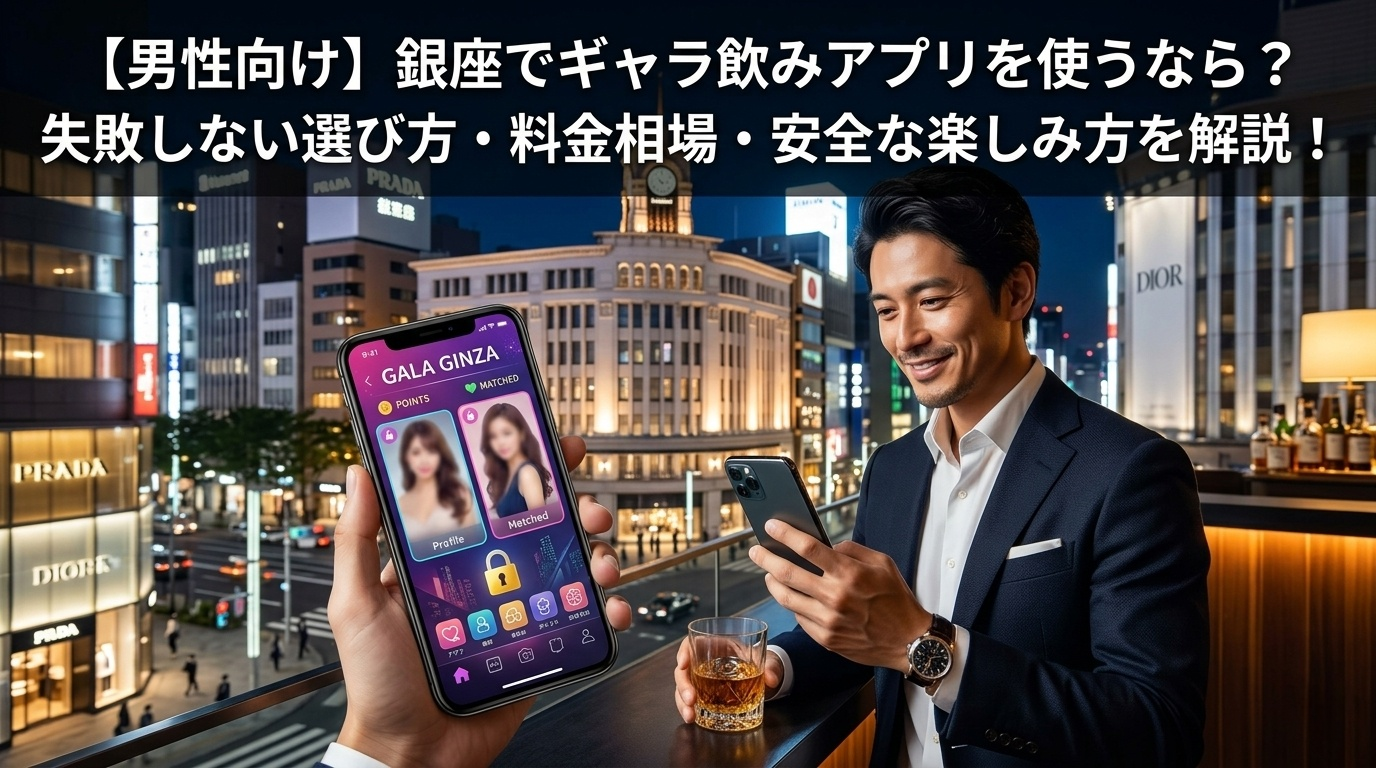 この記事は、男性に向けて銀座でギャラ飲みアプリをご利用する前に知っておきたい基本知識、アプリ選びの基準、料金の考え方、女性に嫌がられない振る舞い、安全に楽しむための注意点をまとめた記事です。