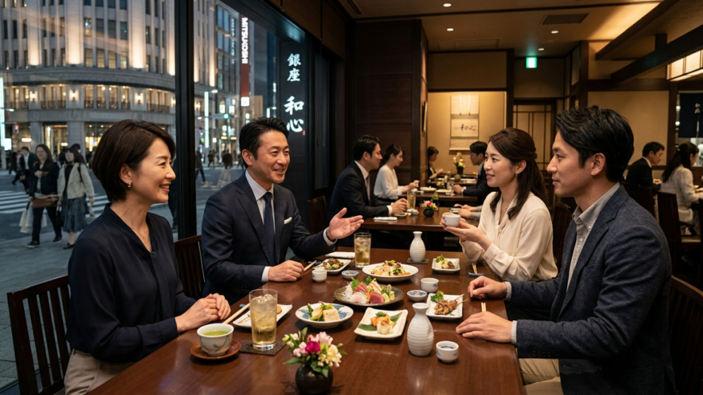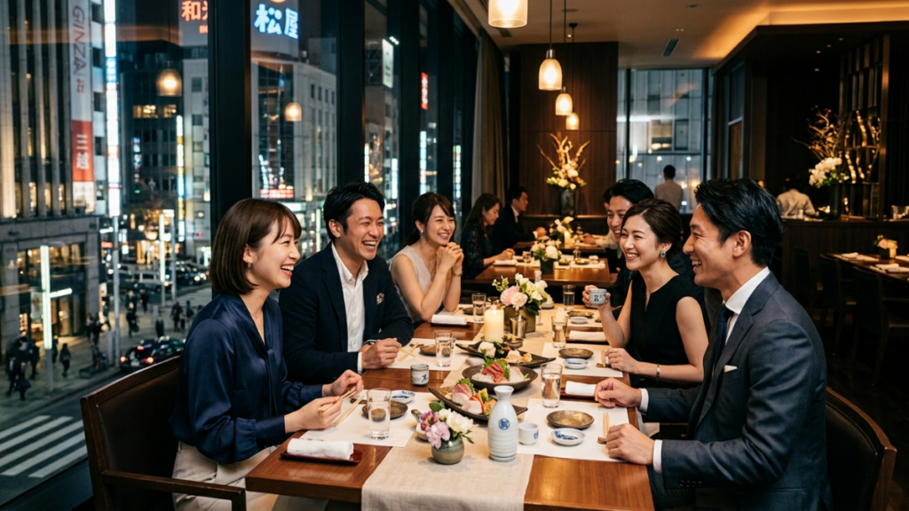 銀座は高級飲食店、会員制バー、ラウンジ、クラブ、個室レストランが多く、大人の飲み会を開きやすいエリアです。